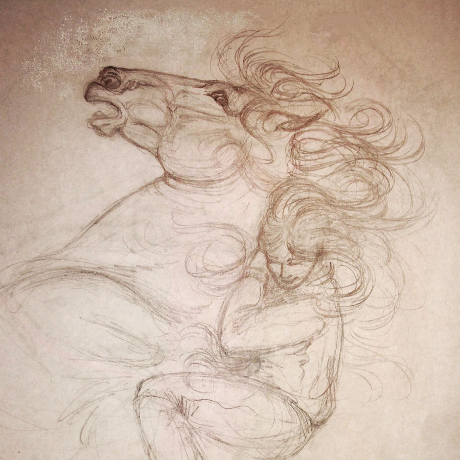 A sketch of the Andalusian before I began sculpting.