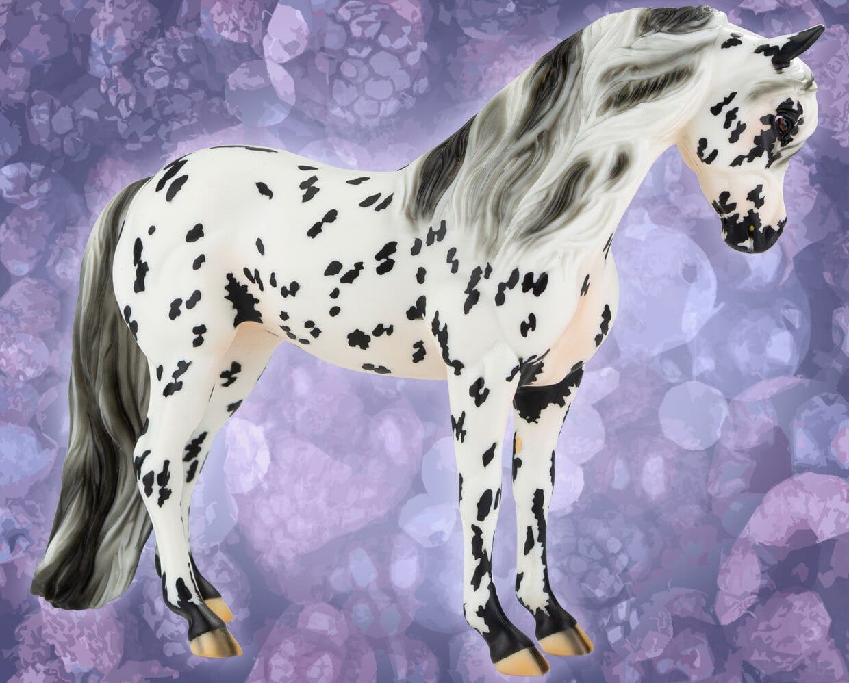 This charming Appaloosa pony features a colorful leopard coat designed by Sommer Prosser, complete with dark spots that mimic the appearance of dried bilberries! Like his namesake berry, Bilberry is a hardy fellow that can withstand the elements, and will surely add a special “boost” to his owner’s day.