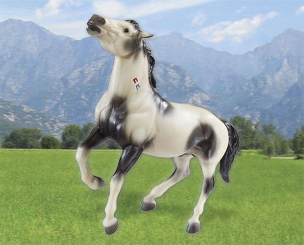 With the release of Tanner, we're helping to fill this surprising gap in his palette. Tanner's Black Pinto paint job, the winner of an online voting poll by Vintage Club members, is a fresh and unique twist on Indian Pony's hand-airbrushed Brown Pinto color. He's sure to be a stand out in your collection, either on his own or in a herd of his brothers.