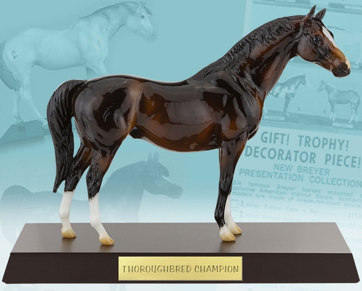 Breyer has mounted models on wooden bases since then, but Champion is the first release designed specifically to recreate the look and feel of the original, and now highly coveted, Presentation Collection models.