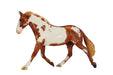 This striking Spotted Draft Horse gelding is a champion vaulting horse owned by Trisha Bowman of Muddy Creek Vaulters. Even at 17, Beau’s easy-going nature and friendly disposition makes him a favorite for beginners and advanced vaulters alike. He is always ready to step up to the plate and help carry his squad to a win. Beau N’ Arrow has been done in an intricate chestnut overo pattern on the Cleveland Bay loose mane version, mold #703 sculpted by Karen Gerhardt.