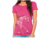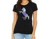 A classic white t-shirt features a beautiful black Arabian on a background of horse-themed descriptive words! This women's jersey t-shirt features ...