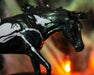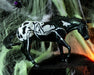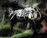 While she appears to have a flashy blanket appaloosa pattern from a distance, upon closer look you’ll notice her blanket is made up of two large spiders on the prowl! A moth and firefly dance just out of their reach, flying to safety…this time. A subtle black widow marking on her face is a warning to those who look closely enough that they may be the next one to be ensnared in her web. Turn the lights off, and all her white markings glow in the dark!