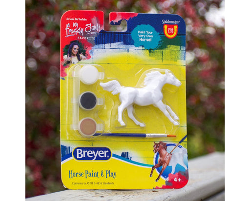 Stablemates painting is a fun activity and loved by Breyer fans of all ages. The horse paint and play series features four different base-coated models - ready to paint. Each is sold individually and comes on a blister card, complete with three paint pots of realistic colors, as well as a paintbrush.
