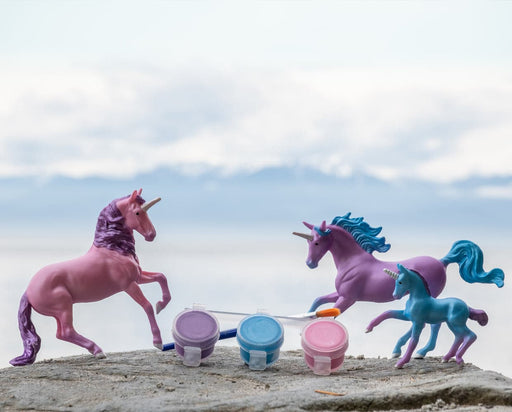 Unicorns come in many different colors, and this exciting activity set lets you decide what those colors can be. The complete set comes with everything you need to create a beautiful unicorn family, and includes 2 unpainted Stablemates unicorns and 1 Stablemates foal, 3 paint pots, and 1 paintbrush.