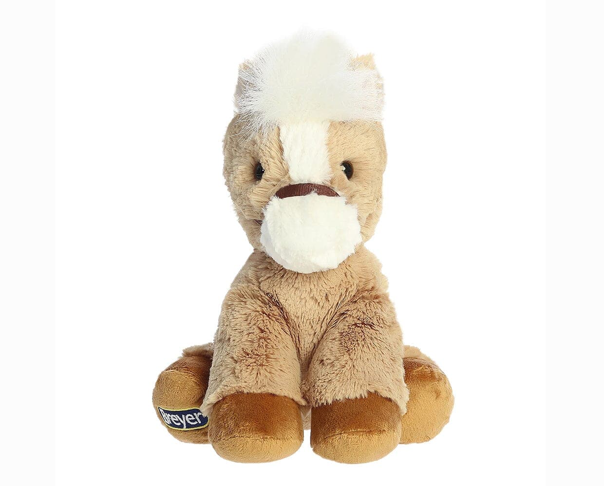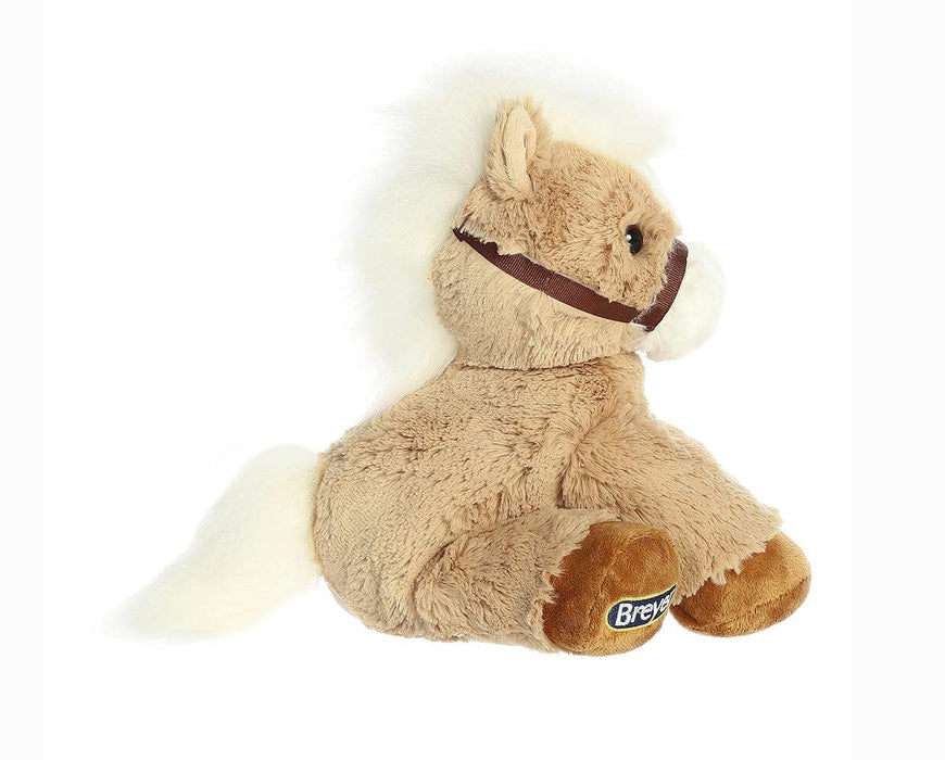 Breyer's Bridle Buddies are super soft and sweet, making them the perfect cute and cuddly companion. This precious palomino horse has a chestnut coat with tan hooves and white colored hair. It features a brown bridle and has "Breyer" embroidered on the bottom of its foot. There are several other breeds are available in this style.