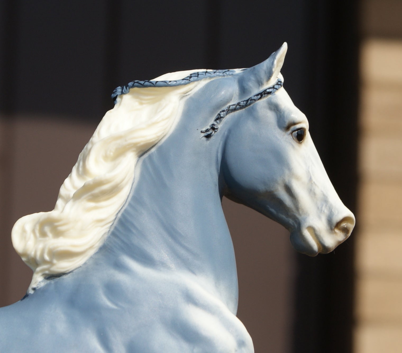 Sold at toy and tack shops, Breyer models became synonymous with the horse world. Horse lovers of all ages began to amass collections of Breyer models. Some collected by breed, others by scale, and others by finish. Models in the Vintage Club blend the molds and finish work of both vintage and modern Breyer models. Club offerings include both vintage decorations on newer molds, as well as fresh interpretations of vintage favorites, which include a variety of finishes from high gloss to “chalky” white basecoats.