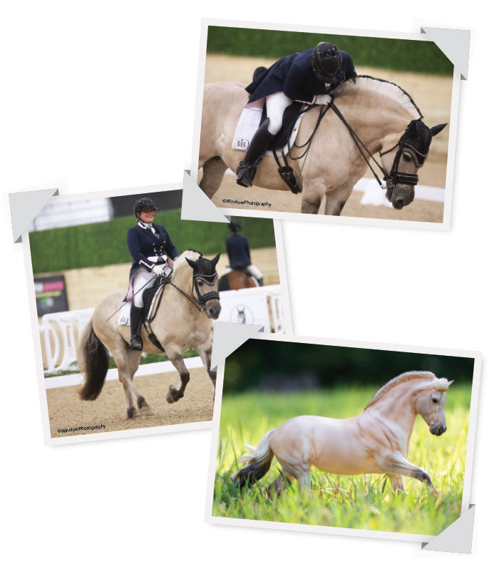 This champion FEI Fjord is presented for fans on the Norwegian Fjord model, mold #808 sculpted by Maggie Jenner-Bennet, in a beautiful grey dun color.