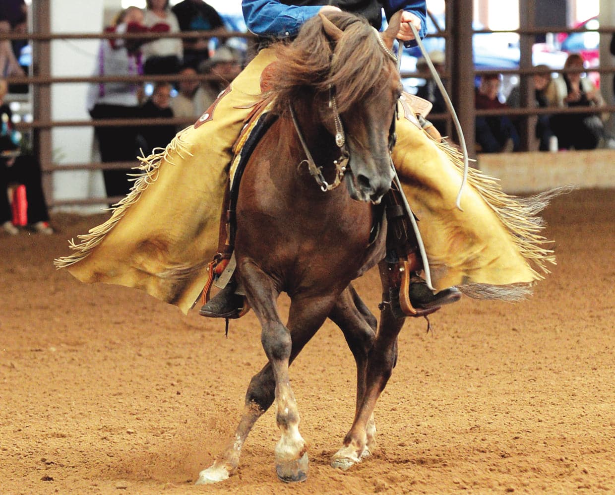 Bred by Shirley & Duane Burris and their daughter Tané Schwartzman, MorganQuest Native Sun has Red Correll and old working western lineage in his blood, making it no surprise that he took to reining like a natural. He entered his first Grand National & World Championship Morgan Horse Show in 2004 and became the Snaffle Bit/Hackmore Reining World Champion. He returned in 2005 and 2006 to win the Open Reining World Championship, and the reserve in 2007 and 2014.