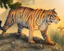 The Siberian tiger is a tiger population in the Russian Far East and Northeast China. It is reddish-rusty, or rusty-yellow in colour, with narrow black transverse stripes. It has an extended supple body standing on rather short legs with a fairly long tail. Siberian tigers are known to travel up to 620 miles.
