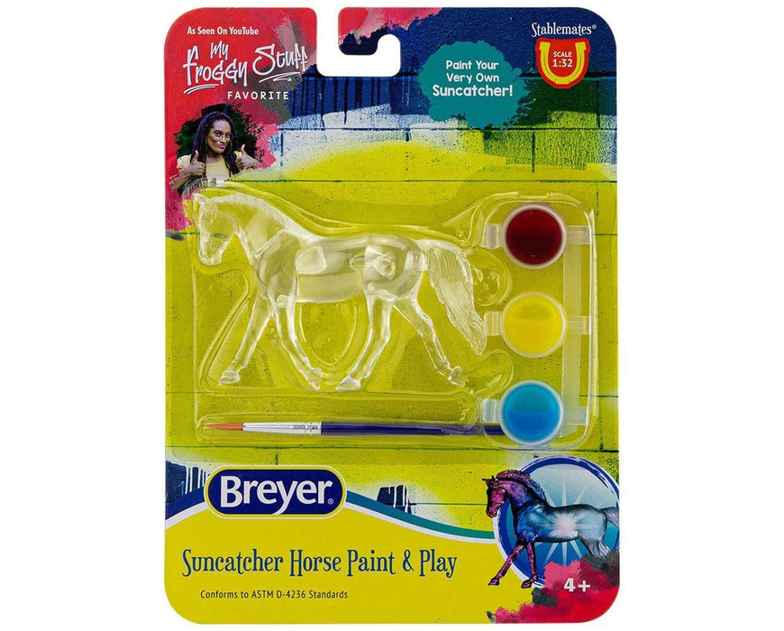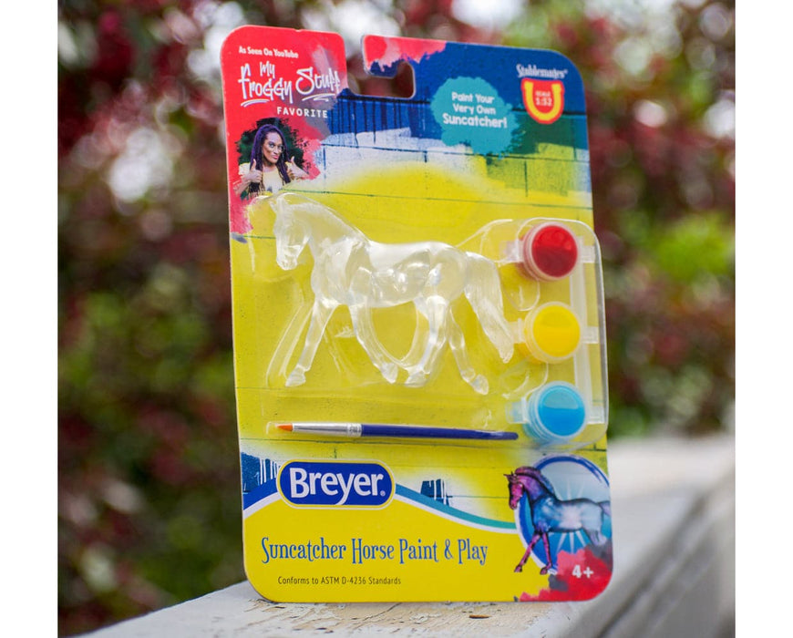 Stablemates painting is a long time favorite activity of Breyer fans of all ages. We are excited about our new Suncatcher Unicorn Paint & Play. Each Stablemates model is clear, and when painted with the special paint, they become dazzling in the sunlight.