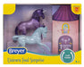 Hidden within the castle walls is a new unicorn foal waiting to be discovered. The set comes complete with a mare, a stallion, and a foal, of course! The Enchanted Forest family includes a pearly pink mare and a shaded black stallion. What color do you think their foal will be?